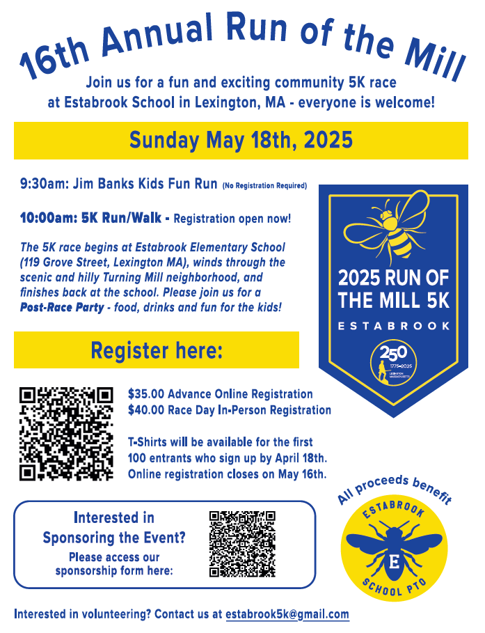 Email estabrook5k@gmail.com with questions or to volunteer.
